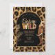 Unleash your wild side with this glamourous safari-themed weekend bachelorette invitation. Featuring a striking leopard print background, shimmering gold palm fronds, and an intricately detailed elephant illustration, this design exudes exotic luxury. The arched frame highlights bold “Girls Run Wild” lettering with chic modern typography in bold animal print patterns. The back features your event itinerary accented by a graceful giraffe image. Fully customizable to suit your party details, this invite is ideal for a glamourous safari, jungle, or animal print-themed celebration. Search ID1148 to see other products in this fun bachelorette design set.