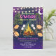 Light up the night with this magical and vibrant girls purple campfire s'mores birthday party invitation. A roaring golden campfire with roasting marshmallows and gooey s'mores glows warmly against a stunning deep purple moonlit forest backdrop, with twinkling string lights draped through the trees and a glowing crescent moon creating an enchanting, almost fairy-tale nighttime atmosphere. The bold colorful lettering and playful "Birthdays Are S'more Fun With Friends" headline perfectly capture the excitement of a nighttime outdoor celebration — ideally suited for backyard campfire parties, evening glamping birthdays, purple-themed outdoor gatherings, or any adventurous girl who loves both the magic of the night sky and the joy of roasting s'mores with her best friends. The rich purple palette gives this design a distinctly feminine yet adventurous energy that beautifully bridges glamorous and outdoorsy. Fully customizable with your child's name, age, date, time, address, and RSVP details. A wonderfully magical invitation for an unforgettable birthday night.