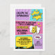 L'invitation à l'anniversaire de 8ème anniversaire de cette fille présente la silhouette d'une ville, des bulles de discours, des étoiles et divers mots sur un arrière - plan rose, bleu et violet. Je voulais créer des invitations de super-héros pour une nouvelle fille pour que le magasin élargisse la collection. J'ai créé ce design depuis quelques années, mais si vous avez besoin d'un numéro qui n'est pas disponible, veuillez me contacter pour un nouveau modèle sans frais supplémentaires. L'invitation super-héroïne de 8ème anniversaire de cette fille est prête à être personnalisée et convient à une fête d'anniversaire super-héroïne de fille.