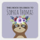 Girls "This Book Belongs" Sloth Name Bookplate Square Sticker