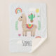 This trendy and modern kids sherpa blanket features a cute hand drawn rainbow llama, with a cactus, plants and rainbow. This gorgeous design also features a place for you to add your girl's name. An adorable gift for any llama lover!
