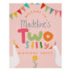 This cute and whimsical girls 2nd birthday welcome sign design features two silly geese with party hats, and can be personalized with a your girls name. The poster also features a pink background, and colourful party bunting. The perfect farm design for your little one's second birthday!
