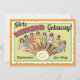 Fabulous Birthday weekend getaway party invitations to a beach, lake, ocean or tropical destination. Features a vintage, hand tinted, somewhat soft focus, girls in a semi-circle in colourful bathing suits with a faux textured look of linen for that vintage postcard look. Perfect for that beachy destination with your girlfriends! Just change the destination to fit your needs. Need help or do you need something custom, just contact me.
