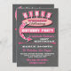 Girls Weekend getaway itinerary Invitations Super cute and cool these invitations feature a retro sign to welcome your friends to a Birthday Party for the weekend and the back holds all the details of the fun events. Chalkboard background and pink and blush colour palate. Hand drawn illustration by McBooboo