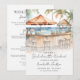 Set the tone for a breezy and fun beachside bachelorette or girls' weekend with this watercolor tiki bar invitation. The front features a vibrant scene of a beachfront tiki bar complete with umbrellas, palm trees, and a stunning mix of orange, blue, tan, green, and white tones. The artwork gradually fades into a clean white background at the bottom, creating the perfect space for your party details in a modern and simple layout.