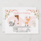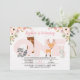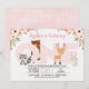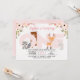 This girl's woodland animals birthday party invitation features four cute animals, a deer, bear, raccoon and rabbit. I have added the word one to the design and some mostly pink watercolor floral arrangements as well. The background is a scanned watercolor paper image. I've included a random polka dot pattern on the back of the invitation over a pink watercolor wash. I wanted to create some new woodland animals first birthday invitations for the store because it's a popular theme . This design is also available with a photograph. This girl's woodland animals 1st birthday party invitation is ready to be personalized.