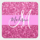 Girly and Glam Hot Pink Glitter Sparkles Monogram Square Sticker