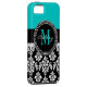Girly Aqua Black Damask Your Monogram Name Case-Mate iPhone Case