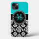 Girly Aqua Black Damask Your Monogram Name Case-Mate iPhone Case