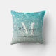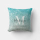 Girly Aqua Blue Silver Ombre Glitter Monogram Name Throw Pillow