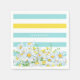 Spring fresh floral paper napkins featuring pretty yellow and white daisies against a trendy aqua and white striped background with stripe of buttercup yellow to add a modern pop of colour. Personalize this ultra girly floral design by adding your name.