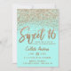 Girly Aqua Teal Gold Scattered Glitter Sweet 16 Invitation