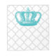 GIRLY AQUA VINTAGE CROWN GREY QUATREFOIL PATTERN NOTEPAD
