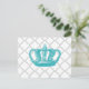 GIRLY AQUA VINTAGE CROWN GREY QUATREFOIL PATTERN POSTCARD