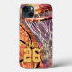 Girly grungy basketball Case-Mate iPhone Case with a floral touch in shades of pink purple and of course orange plus customizable jersey number and name by katz_d_zynes