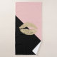 Girly Black Blush Pink Chic Glitter Lips Bath Towel Set