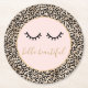 Girly Black Eyelashes Gold Glam Leopard Print Round Paper Coaster