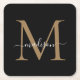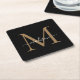 Girly Black Gold Monogram Elegant Modern Script Square Paper Coaster