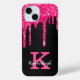 Girly Black Hot Pink Glitter Drips Monogram Name Case-Mate iPhone Case