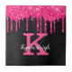 Girly Black Hot Pink Glitter Drips Monogram Name Tile