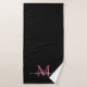 Girly Black Magenta Hot Pink Monogram Script Name Bath Towel