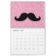 GIRLY BLACK MUSTACHE PINK GLITTER PRINTED CALENDAR