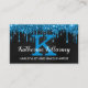 Girly Black Neon Teal Blue Glitter Drips Monogram Business Card