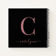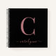 Chic Elegant Pink Rose Gold Monogram Script on a chic Black Square Notebook. Easy to customize with your own name and details. Perfect for your luxury lifestyle! Please contact us at cedarandstring@gmail.com if you need assistance with the design or matching products.