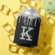 Girly Black Silver Glitter Drips Monogram Name Can Cooler