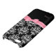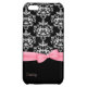 Stylish iPhone 5C case, with a black and white damask pattern, on the top of the case and a solid black background, on the bottom. Graphics of a pretty pink ribbon and bow runs across the case between the two backgrounds. Pink script text, on the bottom, is ready to personalize. Pretty way to protect your iPhone 5 and look stylish too, and makes a great personalized gift idea. Chose from matte or glossy finish on this great looking case.