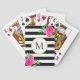 Girly Black White Striped Pink Floral Monogram Playing Cards