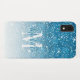 Girly Blue Glitter Sparkles Monogram Script Name Case-Mate iPhone Case