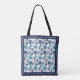 Elegant and modern tote bag with turquoise and blue floral pattern. This cute bag has a blue and turquoise border. Personalize the monogram with your initial. Great idea as a birthday, Christmas or Mother’s Day gift.