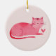 Girly Blush Pink Heart Cat Ceramic Ornament