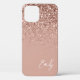 Girly Rose Gold - Blush Pink Faux Sparkle and Dripping Glitter Brushed Metal Monogram Name and Initial Phone. This makes the perfect sweet 16 birthday, wedding, bridal shower, anniversary, baby shower or bachelorette party gift for someone that loves glam luxury and chic styles.