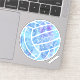 This cute volleyball themed sticker has a blue colour theme with turquoise and purple accents and features the image of a volleyball that has a delicate doodle pattern of paislies, flowers and feathers in white covering the volleyball's colourful, textured-look panels - personalize with her name - by katz_d_zynes