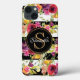 Girly Burgundy Floral Pattern Stripe Monogram Name Case-Mate iPhone Case