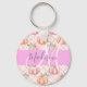 Girly Chic Floral Pink Peach Pumpkin Monogram Name Keychain