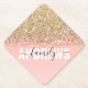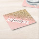 Girly Chic Gold Confetti Pink Gradient Monogram Paper Coaster
