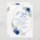 Girly Chic Navy Blue Floral 35th Birthday Invitation