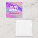 Colourful, personalized Happy Birthday note card with a unicorn rainbow colour background, gold glitter sparkles confetti, and bold white and hot pink writing. You can easily add the name of your choice and change the colour and font of the name using the customize option!