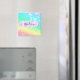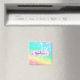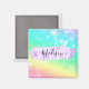 Girly and cute magnet with a colourful aqua, turquoise, blue, green, yellow, pink and peach unicorn rainbow hearts sparkly background. Your custom name and monogram are written in an elegant hand lettered script with a lilac purple unicorn paint brush strokes stripe background. A perfect birthday or Christmas gift!