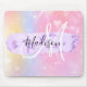 Girly Colourful Unicorn Rainbow Hearts Monogram Mouse Pad