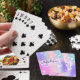Girly and cute playing cards with a colourful pink, purple, lilac, blue and green unicorn rainbow hearts sparkly background. Your custom name and monogram are written in an elegant hand lettered script with a lilac purple unicorn paint brush strokes stripe background. A perfect birthday or Christmas gift!