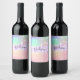 Girly and cute wine label with a colourful pink, peach, purple, lilac, blue and green unicorn rainbow hearts sparkly background. Your custom name and monogram are written in an elegant hand lettered script with a lilac purple unicorn paint brush strokes stripe background. A perfect birthday or Christmas gift!