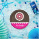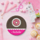 Super cute sweet doughnut design on graphic lace, brown stripes and pink background. At the bottom there's an area for custom name.