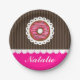 Girly Cute Pink & Brown Doughnut Personalized Name Paper Plate