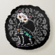 Girly Day of the Dead cute cat custom monogram Round Pillow
