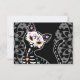 A beautiful and classy RSVP card with A cute Day of the Dead kitty cat on a grey / grey damask black background, great for Halloween or dia de muertos. Made to include specialty needs and number attending. Have fun! be sure to check out the matching invitations.