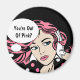 Funny retro fashion lady image and saying makes a great girl's shopping diva gift with saying "You're out of pink?" on the refrigerator magnet that will make any woman smile. Perfect gift for girls, gifts for shoppers, or for anyone who loves pink girly stuff.